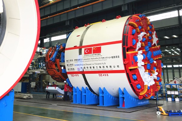 在園區(qū)現(xiàn)場(chǎng),擁有“三頭六臂”的智能型鑿巖臺(tái)車和混凝土噴射臺(tái)車、多功能作業(yè)臺(tái)車等鉆爆法隧道施工裝備正在有序生產(chǎn);被譽(yù)為“地下航空母艦”的全斷面隧道掘進(jìn)機(jī)有5臺(tái)產(chǎn)品在同時(shí)進(jìn)行裝配,其中1臺(tái)將參與土耳其伊斯塔布爾地鐵建設(shè)的盾構(gòu)機(jī)進(jìn)入驗(yàn)收階段,這是我國(guó)首臺(tái)“自駕出海”到歐洲的國(guó)產(chǎn)品牌盾構(gòu)機(jī)。