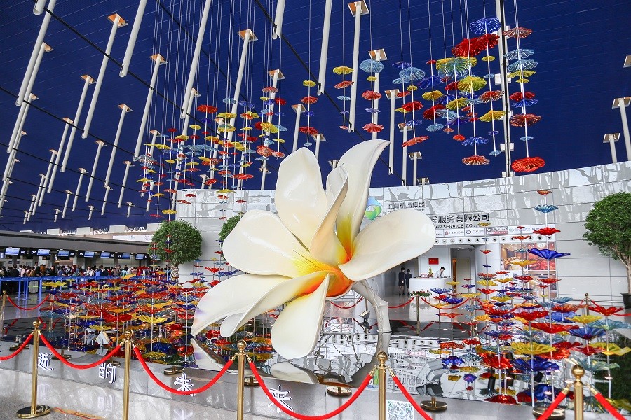 央廣網(wǎng)上海5月9日消息(記者傅聞捷 通訊員沈雪婷)芳菲時節(jié),浦東機(jī)場又迎來嶄新景觀藝術(shù)裝置。1號航站樓出發(fā)公共大廳《海上花》大型藝術(shù)裝置綻放一朵美麗的巨型“白玉蘭”,另一代表上海海派文化的藝術(shù)裝置——《魔都之音》在2號航站樓出發(fā)公共大廳同時亮相。