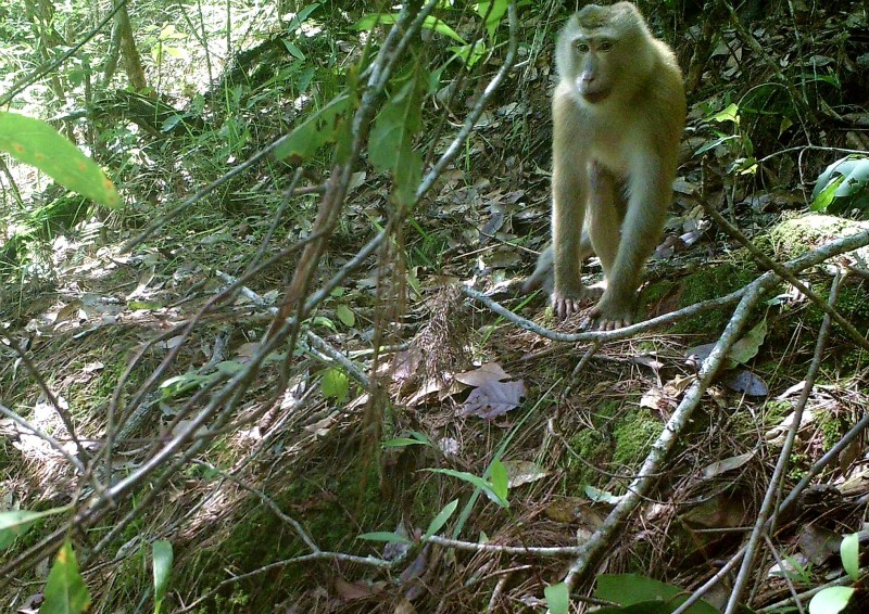 今年3月份,威遠江省級自然保護區(qū)工作人員在保護區(qū)大蛇腰梁子安裝了一臺紅外線相機對野生動物進行監(jiān)測。5月8日,在對紅外線相機進行回收抽檢的時候,保護區(qū)工作人員周亦發(fā)現(xiàn)紅外相機拍攝到了一只猴子的視頻畫面。看到該猴子不同于普通獼猴,周亦并與景谷縣森林公安局取得了聯(lián)系,經(jīng)咨詢專家及上網(wǎng)圖譜比對,森林公安民警初步鑒定,這只猴子是國家一級保護動物豚尾猴。