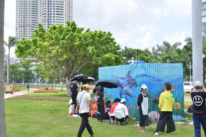 今天上午,在情侶路珠海博物館對面的海邊,一個面積達26平方米的變電箱展現(xiàn)在記者面前,來自北師大珠海分校美術(shù)社及繼續(xù)教育學(xué)院青年志愿者協(xié)會的20多名大學(xué)生和市民朋友現(xiàn)場展示手藝,一起繪制巨幅的“海洋環(huán)保圖”。經(jīng)過前期和現(xiàn)場繪制,變電箱與周邊環(huán)境融為一體。箱體上的海豚活靈活現(xiàn),繪畫極具空間感。據(jù)正方控股相關(guān)負責人介紹,此次為配合情侶路沿線的整體景觀形象,以細節(jié)體現(xiàn)“城市名片”的特色風貌,正方控股對情侶路沿線227個垃圾桶及565㎡變電箱進行了美化,通過在箱體表面繪制出五彩斑斕的海底世界,以此展現(xiàn)出珠海作為濱海城市、生態(tài)文明領(lǐng)跑者的城市特色。