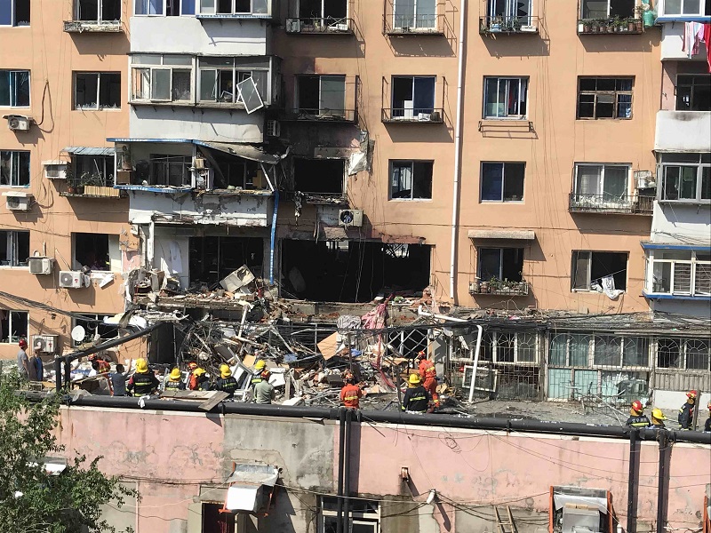 據(jù)沈陽市有關(guān)部門通報:2018年5月31日11時45分,消防沈陽支隊指揮中心接到報警稱:位于皇姑區(qū)華山路33號發(fā)生火情,指揮中心立即調(diào)派消防官兵趕赴現(xiàn)場,11時52分北陵中隊消防官兵到達現(xiàn)場開展滅火救援工作,并第一時間通知120急救中心及煤氣公司趕赴現(xiàn)場組織救援。經(jīng)現(xiàn)場勘查,居民樓3單元四樓2號房間發(fā)生燃?xì)獗,樓上五樓、樓下三樓墻體受損。爆炸引發(fā)著火,過火面積約300平方米,12時10分將明火撲滅。