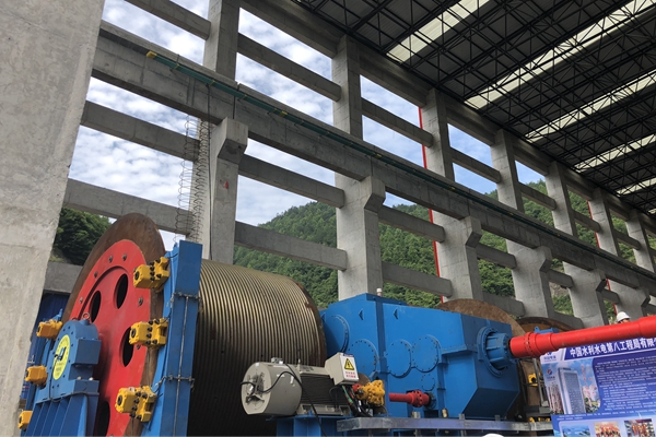 構(gòu)皮灘水電站副廠長、總工程師王貴來介紹,根據(jù)構(gòu)皮灘水電站通航工程的技術(shù)特點、自然條件和建設(shè)要求,該通航工程采用三級垂直升船機,第一、三級采用船廂下水式垂直升船機,第二級采用全平衡式垂直升船機。“因為我們的最高通航水頭達到199米,如果采用船閘的方式通航,最低需要采用七級船閘,一艘貨船單單在構(gòu)皮灘通航就需要耗費很長時間。但是現(xiàn)在采用垂直升船機,通過2306米的航道,我們設(shè)計的單向通航時間只有38分鐘!