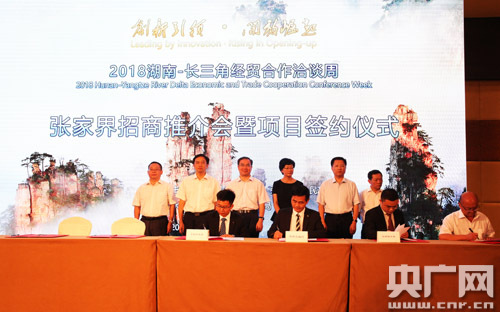 央廣網(wǎng)上海7月24日消息(記者鄧文輝 楊靜)記者23日從湖南張家界市在上海舉行投資環(huán)境說(shuō)明會(huì)暨(長(zhǎng)三角)經(jīng)貿(mào)合作推介會(huì)上獲悉,這次湖南-長(zhǎng)三角經(jīng)貿(mào)合作洽談周活動(dòng)期間,張家界市將有13個(gè)招商簽約項(xiàng)目簽約,其中省級(jí)項(xiàng)目3個(gè),簽約總額51億元;市級(jí)項(xiàng)目10個(gè),簽約總額131.5億元,合計(jì)182.5億元。 張家界正在依托世界絕版旅游資源,打造“旅游勝地、投資寶地、宜居福地”。