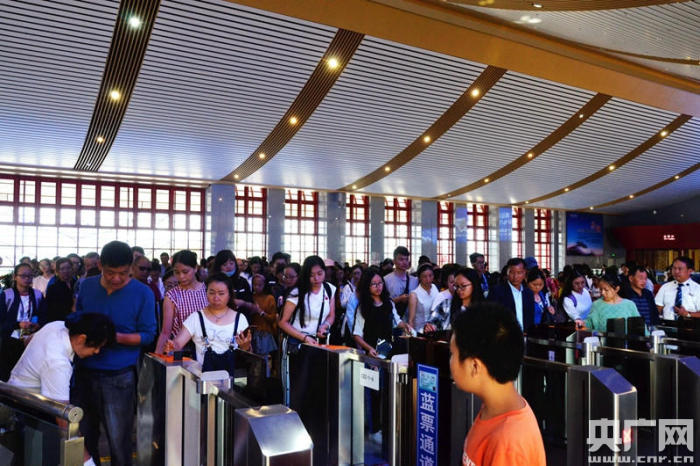 旅客在楚雄站有序排隊檢票進站乘車(央廣網(wǎng)發(fā) 郭婧 攝)
