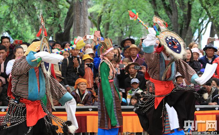 藏戲演出是雪頓節(jié)最受歡迎的活動(dòng)之一。(央廣網(wǎng)記者 普布次仁 攝)