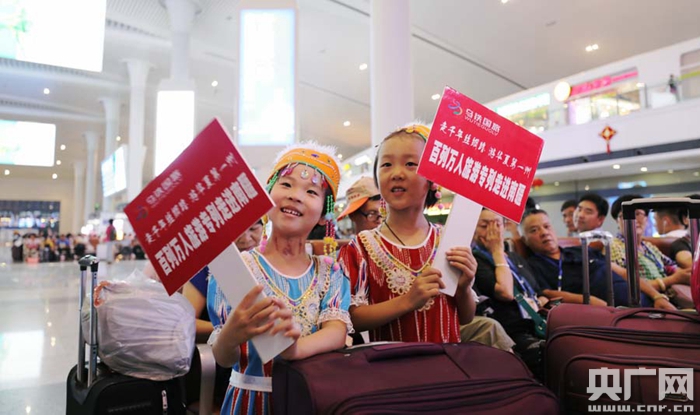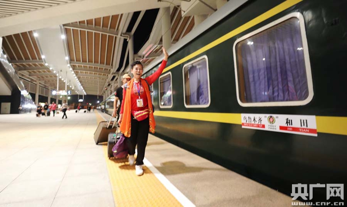 圖為游客即將乘坐“坐著火車游新疆—千回絲路盛世西游緣滿南疆”旅游專列出發(fā)(央廣網(wǎng)發(fā) 新疆鐵路部門供圖)