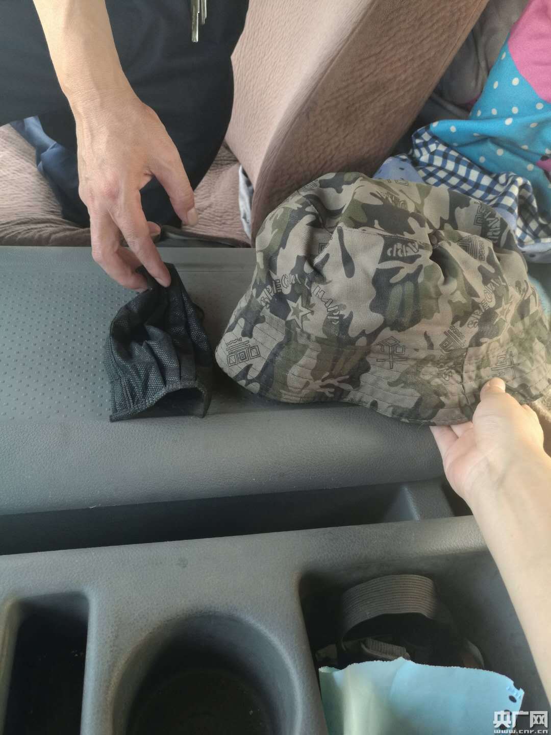 套牌車輛司機過卡口時所帶的帽子和口罩 (央廣網(wǎng)記者 胡曉輝 攝)