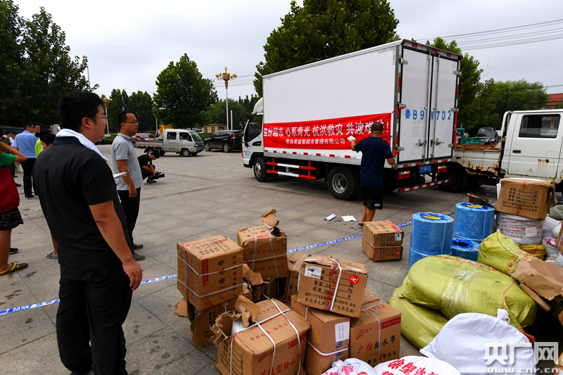 央廣網(wǎng)濰坊8月29日消息(記者劉華棟 王成林 唐磊)8月19日至20日,受臺風(fēng)“溫比亞”影響,山東壽光等地出現(xiàn)強(qiáng)降雨,從而引發(fā)嚴(yán)重洪澇災(zāi)害,大量房屋、農(nóng)田被淹。災(zāi)情發(fā)生后,各地消防官兵馳援壽光,愛心人士的救援物資也從四面八方匯聚到壽光。27日,青島一家愛心企業(yè)帶著滿滿一集裝箱的救援物資連夜趕到壽光,在今天將救援物資送到壽光兩處物資接收點(diǎn)。