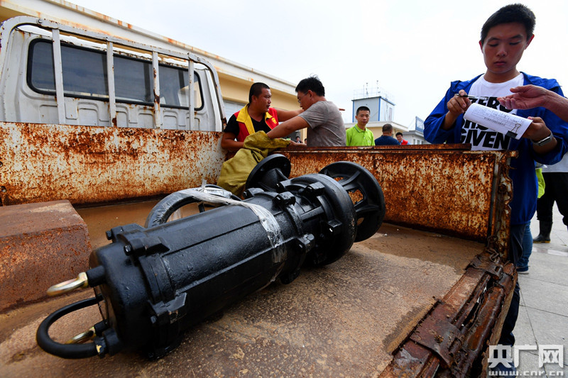 據(jù)介紹,這臺抽水泵不僅功率大,而且還是個污水泵,能將大棚中的淤泥等一并抽出來。最終,這臺污水泵被黃孟村的村支書“爭取”到。苗春雨告訴記者,由于黃孟村地勢相對較高,在此次洪災(zāi)中受災(zāi)相對小一些,依靠之前的抽水泵加上這臺捐贈的大功率水泵,黃孟村的積水問題基本能夠得到解決。(央廣網(wǎng)發(fā) 通訊員劉延珉 攝)