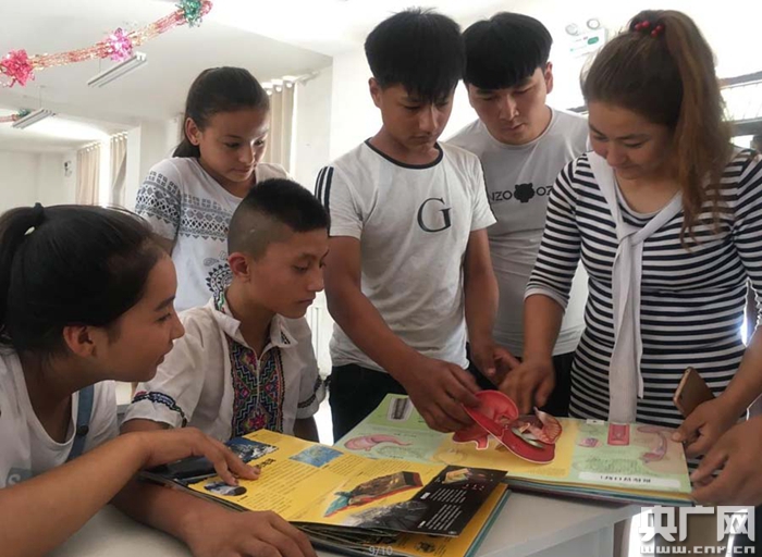 孩子們正閱讀金冠華購置的科學(xué)畫冊(cè)(央廣網(wǎng)記者 吳卓勝 攝)