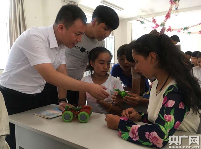 為了讓村里的孩子動(dòng)手做科學(xué)實(shí)驗(yàn),金冠華自掏腰包,購置了30多部像蒸汽機(jī)、照相機(jī)等原理模擬的實(shí)驗(yàn)器材。歐吐拉艾日克村學(xué)生亞森·艾拜說:“我的愛好也是物理,看安裝圖,一邊做一邊看,對(duì)我的幫助很大。”