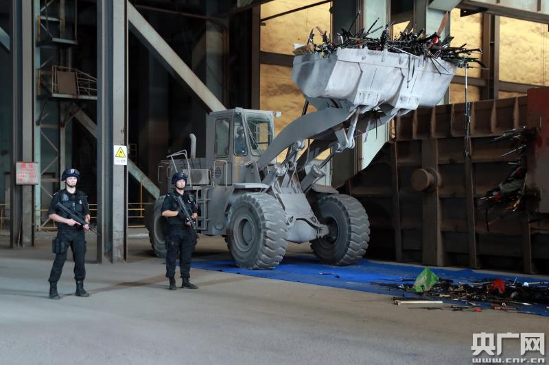 非法槍爆物品投入熔爐銷毀(央廣網發(fā) 重慶市公安局供圖)