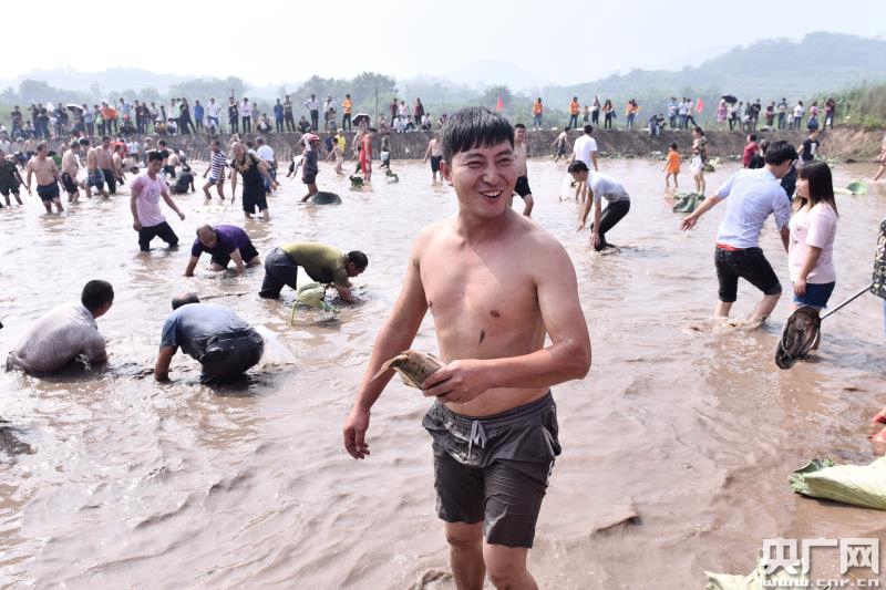 農(nóng)民朋友參加荷塘抓魚比賽(央廣網(wǎng)記者 劉湛 攝)