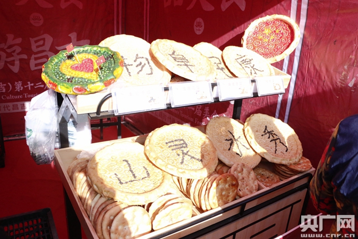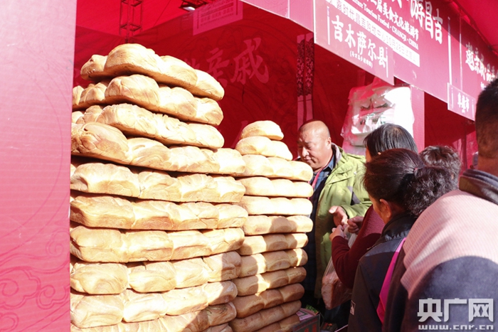 阜康市美食展區(qū)的烤馕別具一格(央廣網(wǎng)見習(xí)記者 韓雪瑩 攝)