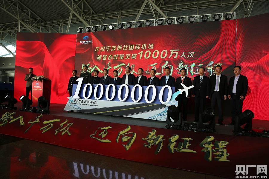 當天,寧波機場在航站樓舉行簡單不失熱烈的慶;顒印T趹c祝儀式上,浙江省機場集團公司副總經(jīng)理蔣福敏說:“邁入‘千萬級’,這對寧波民航人來說是個值得慶祝的時刻。踏上新征程,站在‘1000萬’這個新的起點,我們比以往更加有信心和力量,繪就屬于寧波民航未來最新最美的藍圖。我們有理由相信,在民航強省戰(zhàn)略的發(fā)展引領(lǐng)下,寧波民航將以更好的服務水平、更強的保障能力、更快的發(fā)展步伐,做強做大,回饋地方、回饋社會、回饋百姓,以時不我待的氣概在東海之濱的跑道上迎風飛翔!”