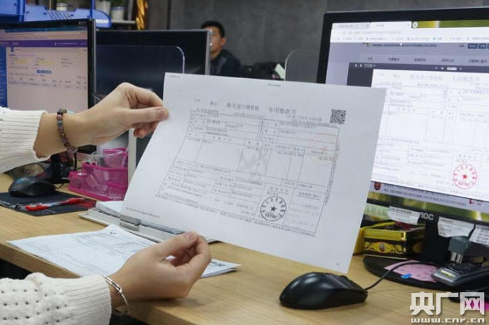佛山首票由企業(yè)自行打印的《海關專用繳款書》(央廣網發(fā) 通訊員供圖)