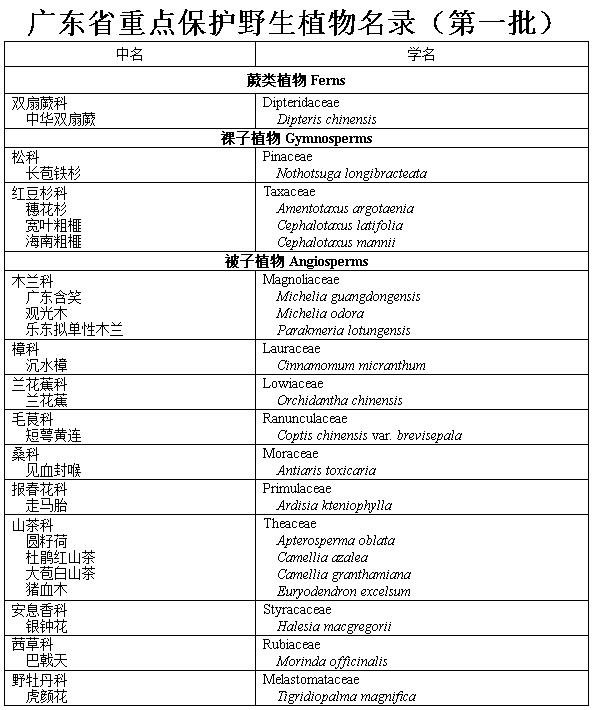附:廣東省重點保護野生植物名錄(第一批)