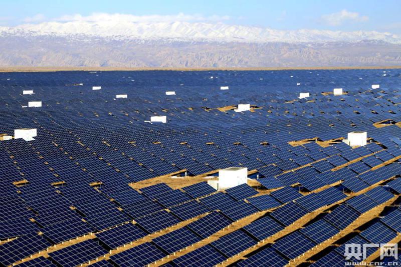 太陽能光伏電辦組成的藍色海洋(央廣網(wǎng)記者張雷攝)