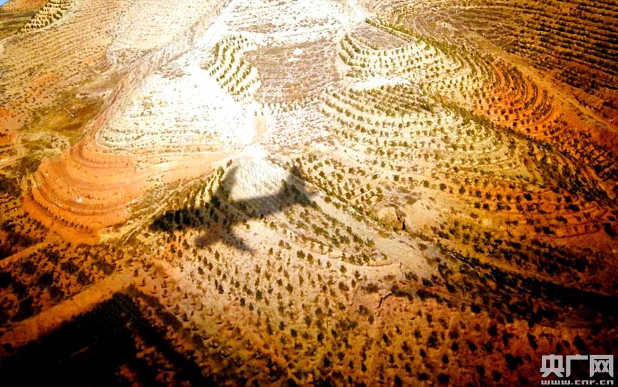 空中俯瞰西寧市北山綠化(央廣網(wǎng)記者 張雷 攝)