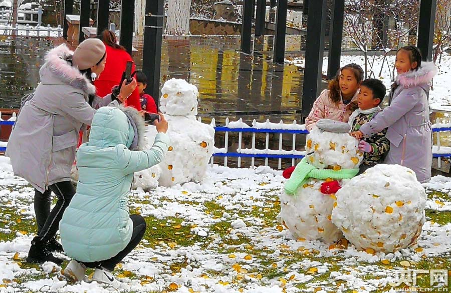 西寧市民在南川河濱河游園堆雪人(央廣網(wǎng)記者 張雷 攝)