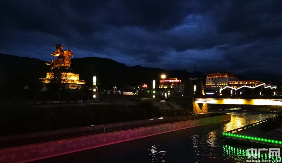 玉樹(shù)市格薩爾文化廣場(chǎng)夜景(央廣網(wǎng)記者 張雷 攝)