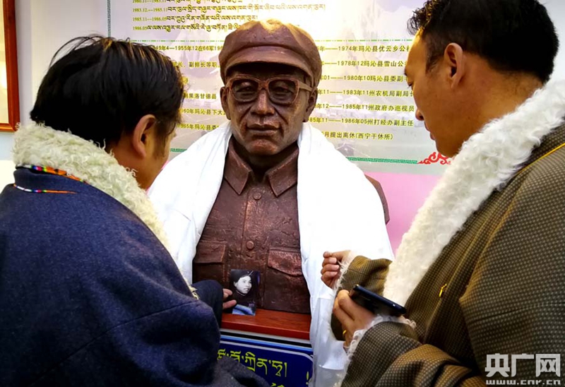 雪山鄉(xiāng)藏族干部群眾在“陶振華紀念館”緬懷老書記(央廣網(wǎng)記者 張雷 攝)
