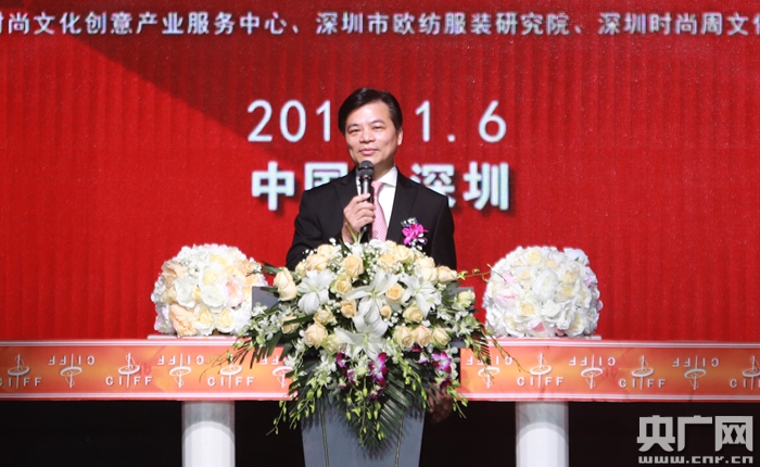 深圳市時裝設(shè)計師協(xié)會會長周世康致辭(央廣網(wǎng)發(fā) 承辦方供圖)