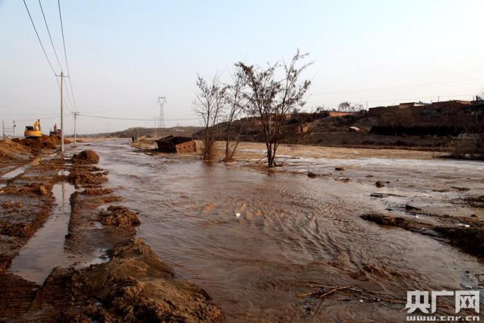 10日上午,在受災(zāi)最為嚴(yán)重的靈武市崇興鎮(zhèn)海子村,三臺工程車輛正在對洪水所經(jīng)的溝渠進(jìn)行清淤疏浚,奇怪的是,盡管潰口已經(jīng)被夯實(shí)、圍堰,堵住了下泄的湖水,但是一條寬約五、六米,較為湍急,并帶有大量泥沙的水流還在大量涌入下游農(nóng)田。幾位村民告訴記者,這是由于洪水將上游山體和所經(jīng)過的毛烏素沙漠沖出了豁口,加之當(dāng)?shù)氐叵滤?/span>較高,多股地下水涌出并匯集成河。這股水是從9日下午開始出現(xiàn)的,目前呈現(xiàn)出越來越大的態(tài)勢。希望引起相關(guān)部門高度重視,防止造成新的隱患。