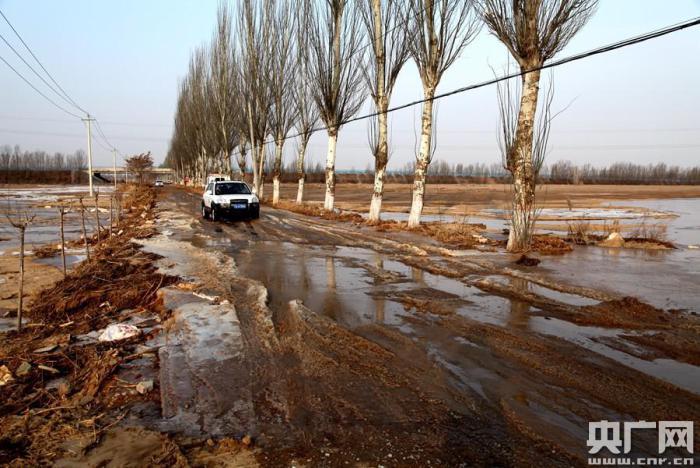 車輛經(jīng)過水毀路面(央廣網(wǎng)記者 胡鈺 攝)