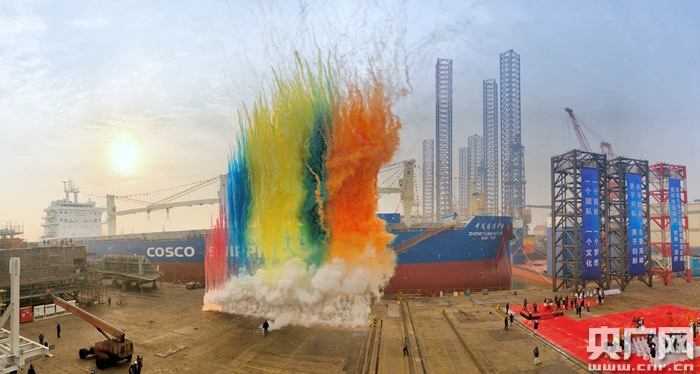 大連中遠海運重工設(shè)計建造的多用途紙漿船“中遠海運開拓”輪命名交付(央廣網(wǎng)發(fā) 張善殊 白俊 攝)