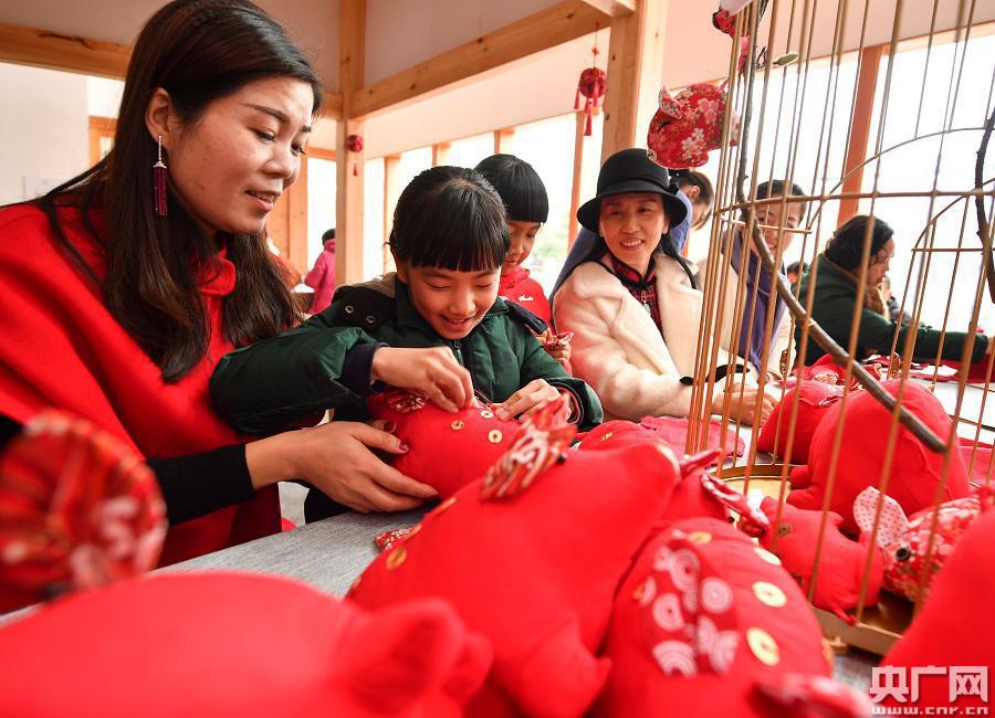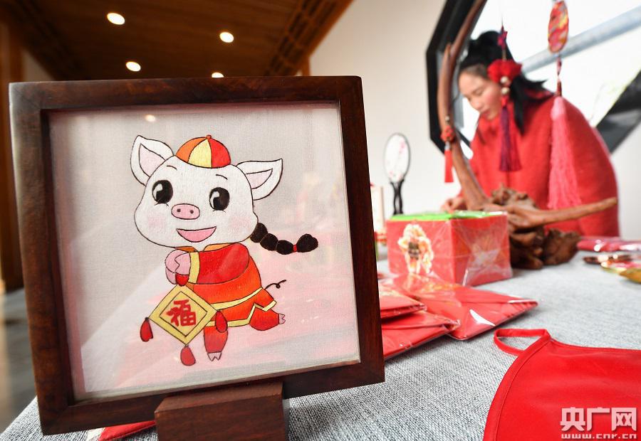今天的首場(chǎng)集市以“金豬鬧春吉祥年”為主題,現(xiàn)場(chǎng)進(jìn)行的縣工藝美術(shù)家協(xié)會(huì)女紅專業(yè)委員刺繡作品義賣、寧?h城中小學(xué)國(guó)畫社團(tuán)創(chuàng)作的水墨百豬長(zhǎng)卷、花色小豬模型米糕制作、手工吉祥紅豬縫制等,無(wú)不散發(fā)著濃濃的“十里紅妝”傳統(tǒng)文化印跡。