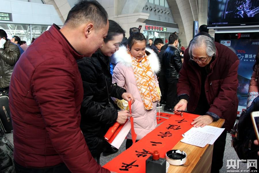 銀川車站還邀請(qǐng)地方和鐵路的書法老師現(xiàn)場(chǎng)寫春聯(lián)贈(zèng)與旅客,讓旅客拿著祝福回家過年?瓦\(yùn)車間還用心熬煮了暖心姜糖水,由青年志愿者分送給旅客,驅(qū)走旅客的寒氣,暖暖和和踏上回家過年之旅;銀川車站還組織志愿者在實(shí)名制驗(yàn)證口尋找生日在1月21日的旅客以及當(dāng)日出行的小朋友,祝福旅客生日快樂、新年快樂,并為旅客贈(zèng)送金豬生日祝福小禮品,通過互動(dòng),感受不一樣的鐵路春運(yùn)。