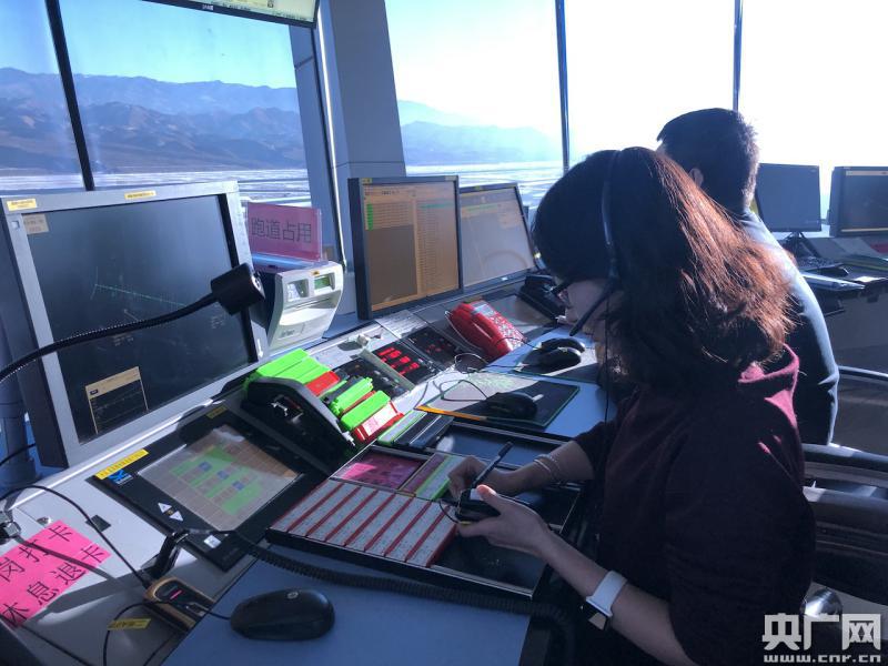 央廣網(wǎng)西寧1月23日消息(記者劉澤耕 通訊員李雨濃)“02199,西寧塔臺早上好……跑道外稍等一分鐘……地面風(fēng)290.5m/s,可以起飛……”在青海西寧曹家堡國際機場塔臺,民航青海空管分局塔臺管制員袁佳瑞頭戴耳麥,手持話筒,通過無線電調(diào)配飛機的飛行高度、方向以及起降時的飛行動態(tài),目光緊盯飛機一直到其消失在視線之內(nèi)。袁佳瑞說,在飛機起飛降落過程中,要保證跑道沒有航空器等障礙物,做到掃視跑道,目迎目送。