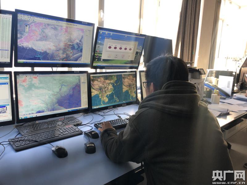 氣象臺預(yù)報員查看氣象資料 (央廣網(wǎng)記者劉澤耕攝)