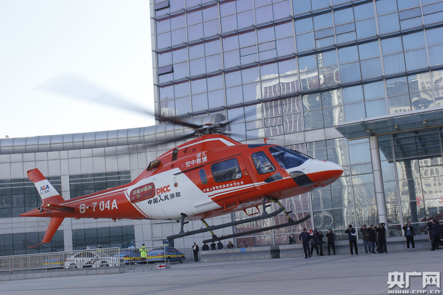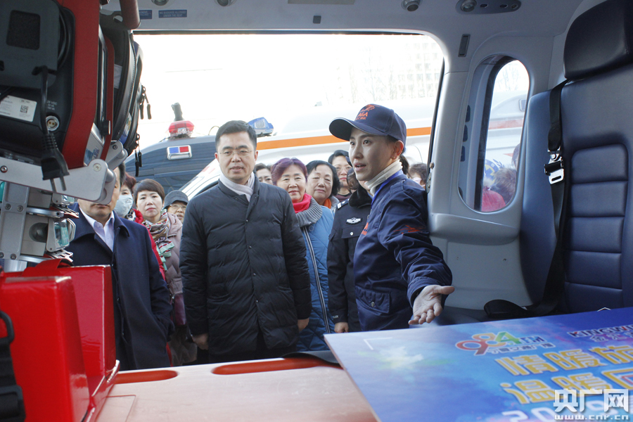 救援直升機(jī)工作人員介紹直升機(jī)醫(yī)療設(shè)備(央廣網(wǎng)發(fā) 通訊員付亞明 攝)