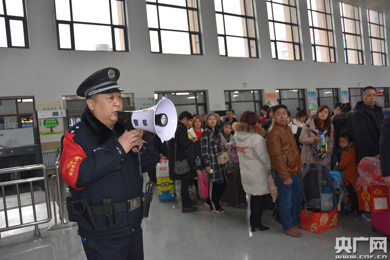“早晨八點鐘有個重點車,是運城到大同的火車,這趟列車旅客比較多,早晨六點半就必須到崗。今天還有白班,預計要到晚上的八點鐘下班。”在旅客進站前,吉金宏又做起了安全宣傳員,“旅客朋友們大家好,我是運城火車站的巡視民警,現(xiàn)在我向各位宣傳一下出門的安全旅行常識……”在確認所有旅客安全上車后,吉金宏又開始了對車站的巡視。