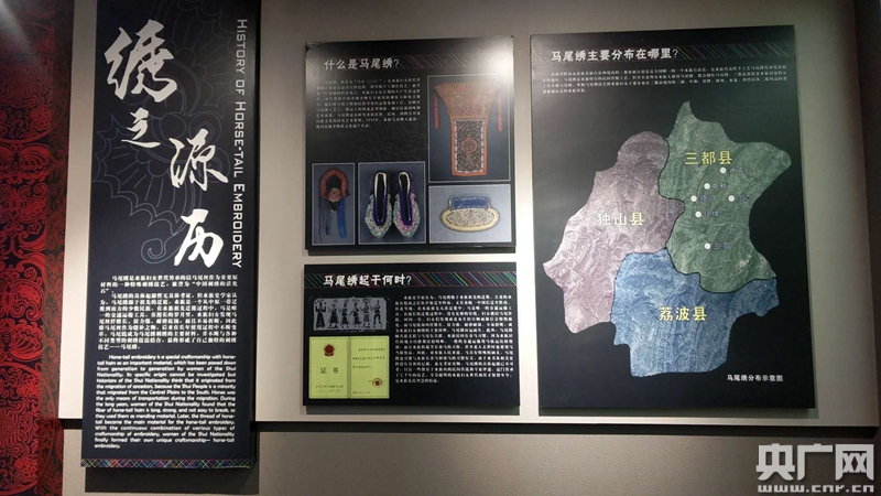 “馬尾繡傳承保護(hù)展示中心”是宋水仙在2018年,作為水族全國(guó)人大代表,參加全國(guó)兩會(huì)時(shí),在貴州代表團(tuán)小組討論會(huì)上提出“修建水族馬尾繡博物館”的建議后修建而成的。她說(shuō):“我作為為水族馬尾繡事業(yè)努力了40多年的水族馬尾繡國(guó)家級(jí)傳承人,已收集到上萬(wàn)件的水族馬尾繡珍品。長(zhǎng)時(shí)間以來(lái)一直存放在自家80多平米的木房里,對(duì)繡娘培訓(xùn)也在這樣狹窄的空間里進(jìn)行。這既不利于保護(hù)多年所收集來(lái)的水族馬尾繡珍品,也不利于傳承發(fā)展這一國(guó)家非物質(zhì)文化遺產(chǎn)。因此,去年全國(guó)兩會(huì),我很榮幸作為水族全國(guó)人大代表,在貴州代表團(tuán)小組討論會(huì)上,就反映了我們水族馬尾繡的現(xiàn)狀,遇到的困難。特別擔(dān)心的是,家里面的防潮防腐,消防安全防護(hù)等條件是很差,不利于這些‘寶貝’的保護(hù)傳承發(fā)展,于是我提出了建立‘水族馬尾繡博物館’的建議。我這建議一提出來(lái),當(dāng)時(shí)就得到省領(lǐng)導(dǎo)的大力支持!