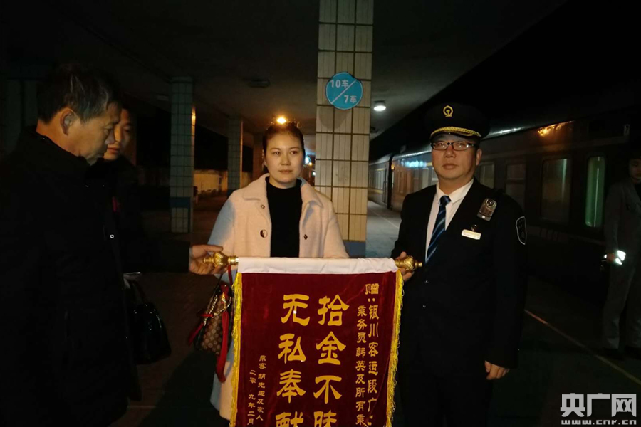 史宏斌和旅客協(xié)商后決定,由K1296次列車返程時將旅客遺失物品帶回赤壁站,旅客到赤壁車站取回失物。旅客拿到遺失物品后非常激動,專門制作了錦旗對列車工作人員表示感謝。