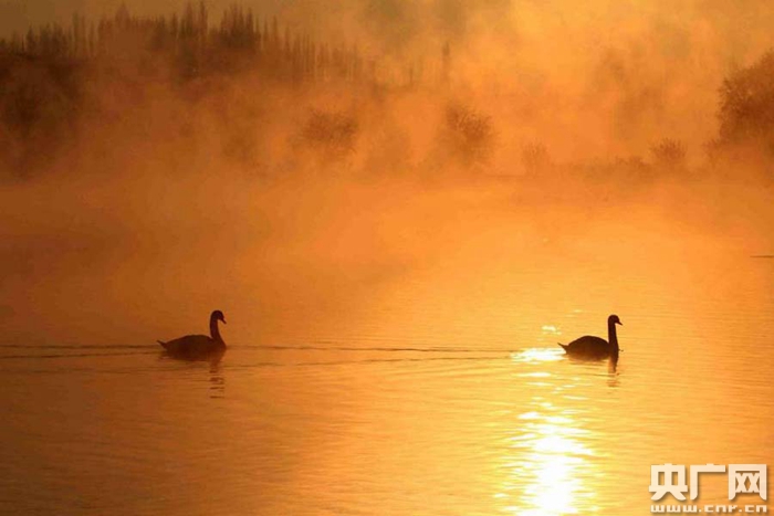 天鵝泉濕地公園天鵝成群(央廣網(wǎng)發(fā) 張慶華、王美涵 攝)