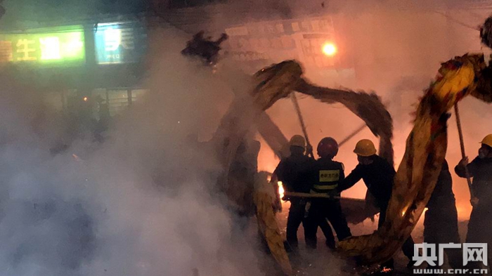 龍舞新春開年頭,煙花散盡好年來。2月13日晚,西坪鎮(zhèn)鬧新春現(xiàn)場(央廣網記者 陳屹 攝)