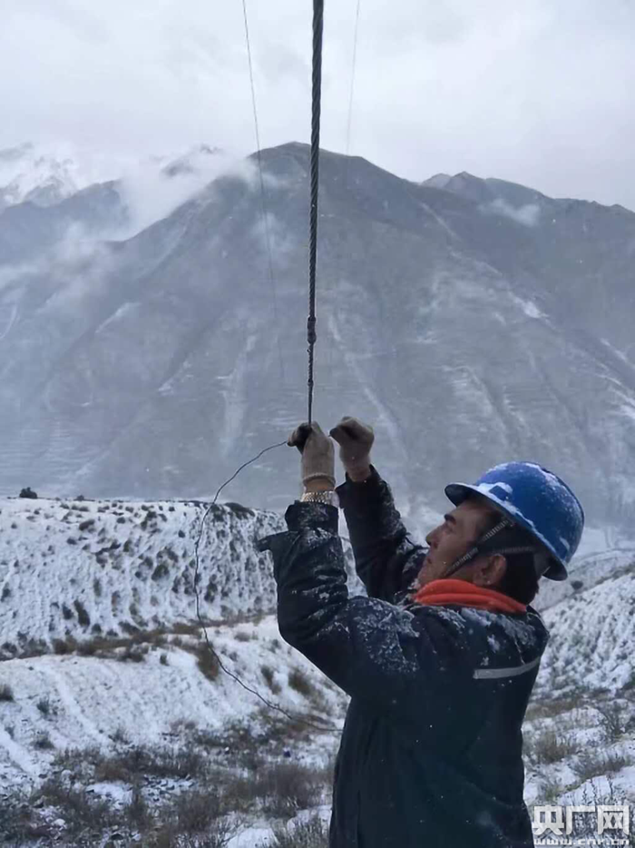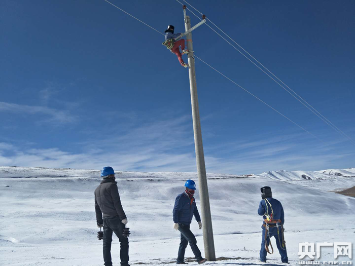 國網(wǎng)玉樹供電公司運檢員在進(jìn)行線路檢修(央廣網(wǎng)發(fā) 國網(wǎng)青海省電力公司供圖)
