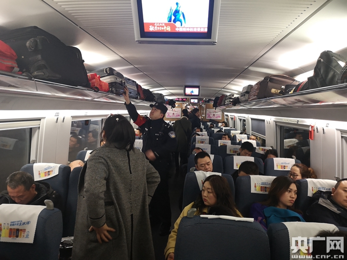 受降雪影響,天津開往長沙的G292次列車西安北開車晚點2小時之多,乘警許武超深入車廂一遍接著一遍的巡視,檢查消防器材,巡查清理重點部位,維護車廂秩序!靶∨笥褎e在車廂里跑來跑去,以免跌倒摔傷”“這位同志睡覺時一定將自己的手機放在兜里,不要給不法分子留有可乘之機”“小朋友接熱水不要太滿,走路時要小心”……許武超不停地提示著周圍旅客。巡視一遍車廂比平時多用了整整半個小時。