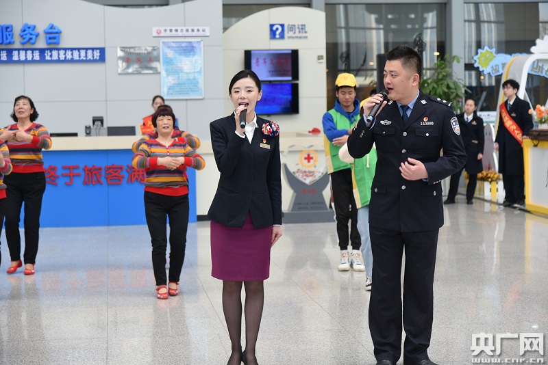 為旅客表演歌舞快閃(央廣網(wǎng)發(fā) 江曲 攝)