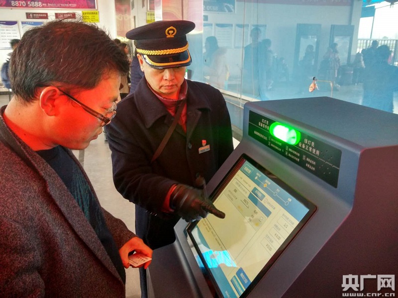 在熙熙攘攘的售票大廳,酉陽站的老黨員熊尚云耐心的引導(dǎo)旅客通過自動售票機購票。說起自動售票機,對于春運支援人員47歲的他可是第一次真正意義上的接觸,早上八點那會旅客還不多,就開始請教售票員關(guān)于自動售票機的操作流程及注意事項,看到自己引導(dǎo)旅客通過自動售票機順利購買車票時,他的臉上也露出了微笑。