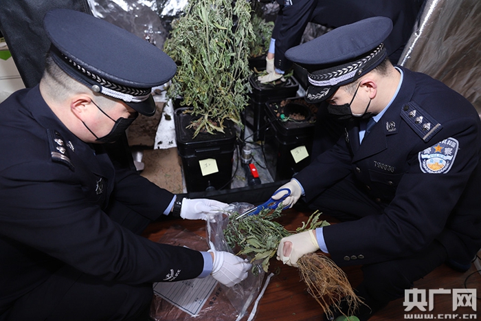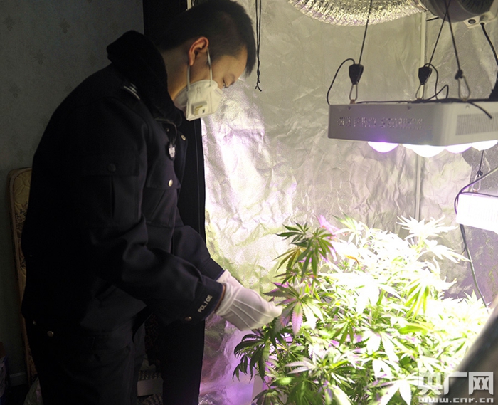 民警查獲室內(nèi)種植的大麻(央廣網(wǎng)發(fā) 成都海關(guān)供圖)