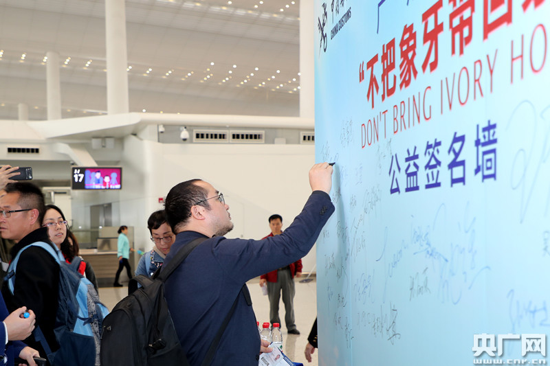 央廣網(wǎng)廣州3月1日消息(記者鄭澍 通訊員關(guān)悅)2月28日,廣州海關(guān)在廣州白云國(guó)際機(jī)場(chǎng)二號(hào)航站樓出發(fā)廳舉辦了“不把象牙帶回家”公益宣傳活動(dòng),通過播放公益宣傳片、緝私犬表演、涉案物品展示、公益簽名等方式,向公眾普及瀕危野生動(dòng)植物保護(hù)知識(shí)和海關(guān)監(jiān)管規(guī)定,倡議廣大旅客自覺抵制象牙制品,不把象牙帶回家。
