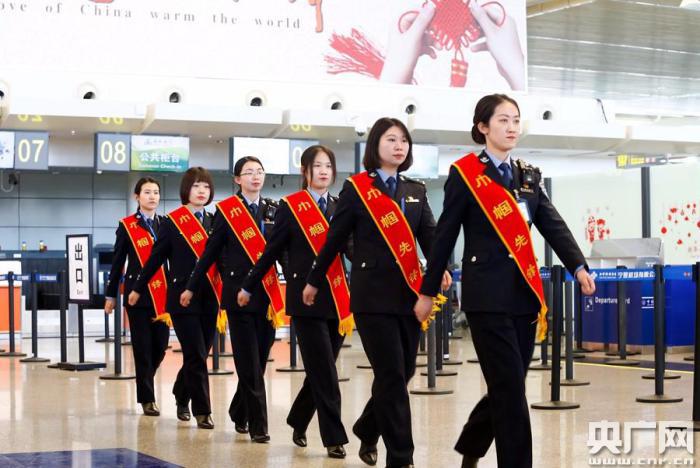 在銀川空港口岸的邊檢巾幗先鋒們(央廣網(wǎng)發(fā) 劉玉飛 鄧子晗提供)