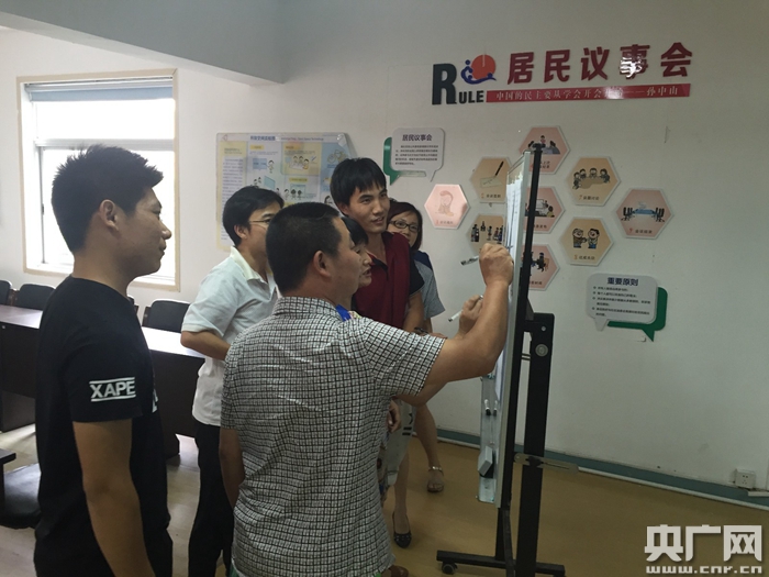 圖為寧波市海曙區(qū)社區(qū)居民正在就社區(qū)事務(wù)開展討論(央廣網(wǎng)發(fā) 續(xù)大治 攝)