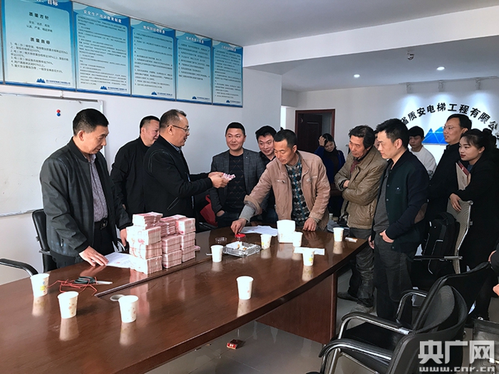 巴中維權(quán)人員把討回工資發(fā)給民工(央廣網(wǎng)發(fā) 巴中總工會(huì)供圖)