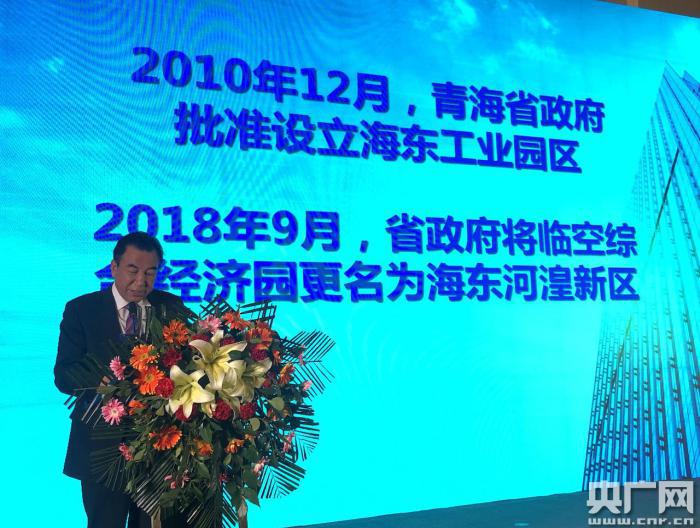 海東工業(yè)園區(qū)管委會專職副主任王占恩作項目推介(央廣網(wǎng)記者 劉澤耕 攝)